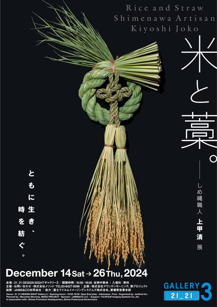 2024年12月14日(土)~12月26日(木)の期間、Exhibition&POP-UP SHOP「米と藁。しめ縄職人 上甲 清 展―ともに生き、時を紡ぐ。」を、21_21 DESIGN SIGHTギャラリー3にて開催します。